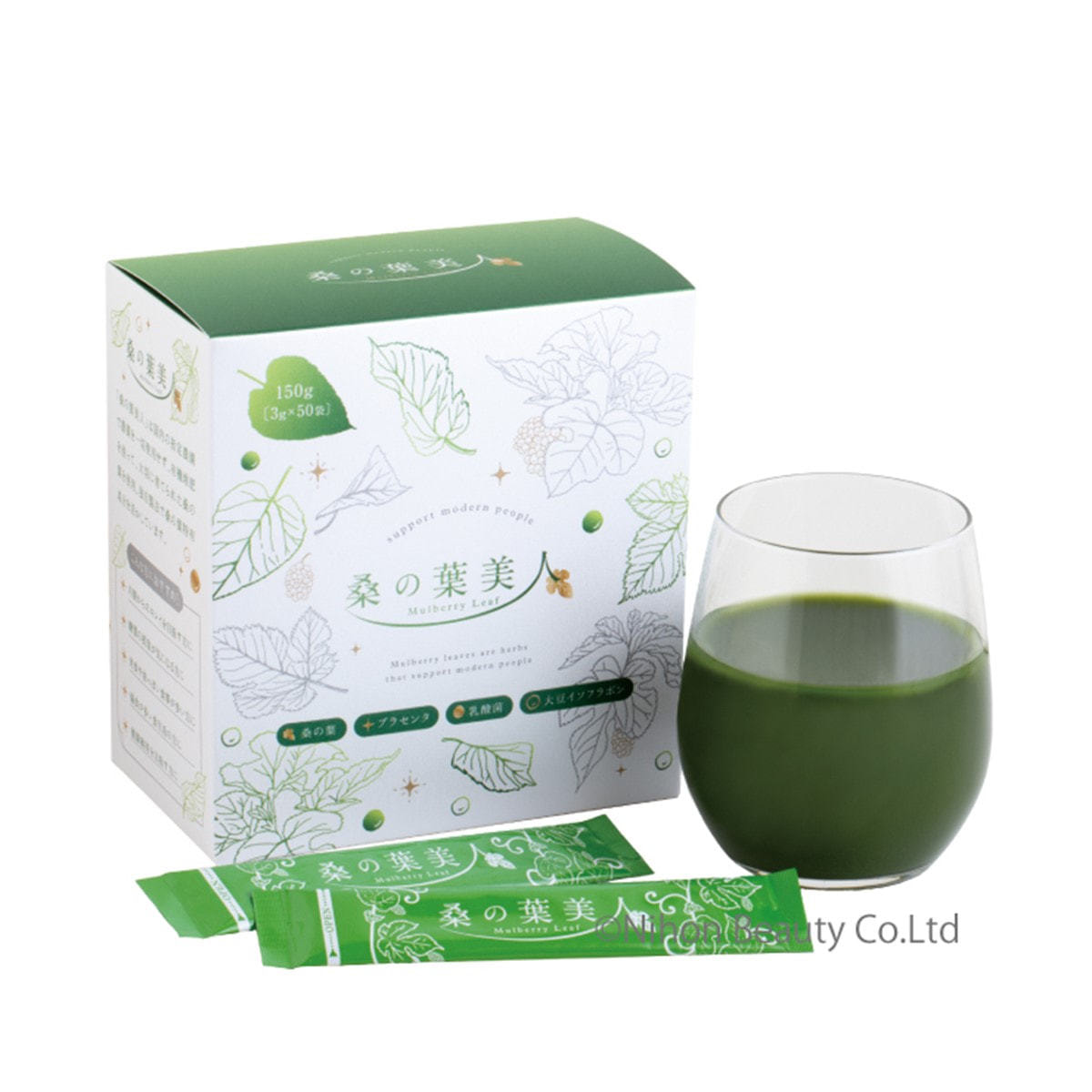 食物繊維やビタミン・フラボノイドが豊富な桑の葉をはじめ、大豆イソフラボン、抹茶、乳酸菌、プラセンタエキスと女性にうれしい成分が配合され、おいしく飲みやすい美容青汁として店販売上に貢献した。