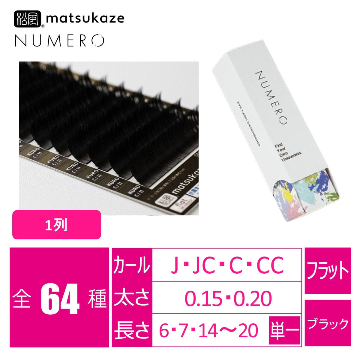 老舗マツエクメーカー「松風」が、品質・作業効率・コストの全てにおいて自信を持って開発した、NUMERO<KURO>が、あなたのサロンの新スタンダードに。