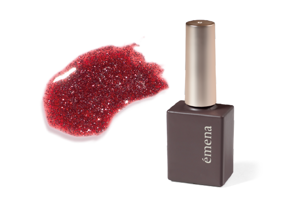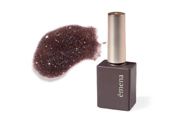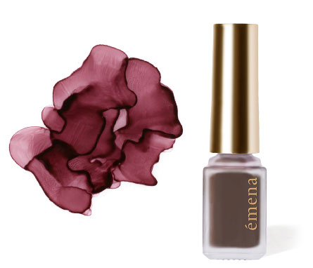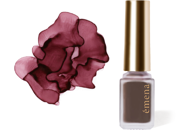 秋らしいくすみ感のあるカシスカラーをメインに、鉱石を再現したようなデザインに仕上げました。『émena』のアートインクとフラッシュジェルを組み合わせることで、華やかな印象に。アートインクは発色がとても良く、繊細でくっきりなラインを出せる事も魅力です。