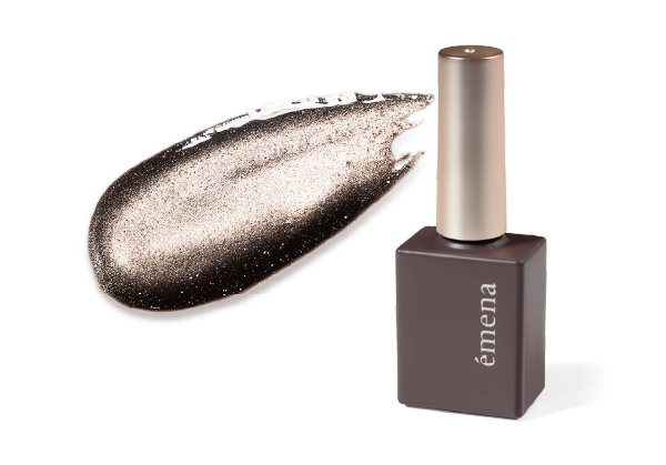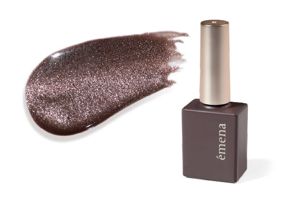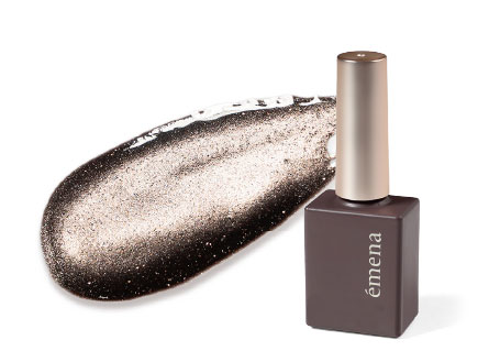 ライトや太陽光に反射して輝くフラッシュジェルとうるつやな質感の微粒子マグネティジェルがひとつになったマグネティフラッシュジェルが主役。シックなマグネティジェルとアースカラーでまとめて、ネイルデザインに秋の雰囲気をプラス。