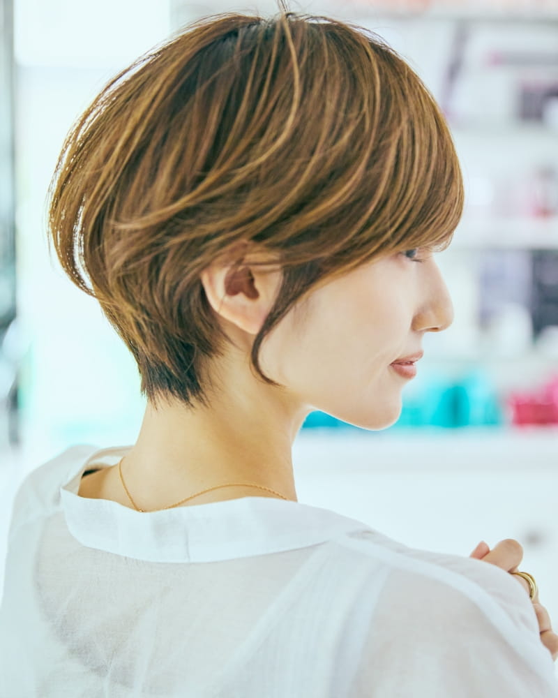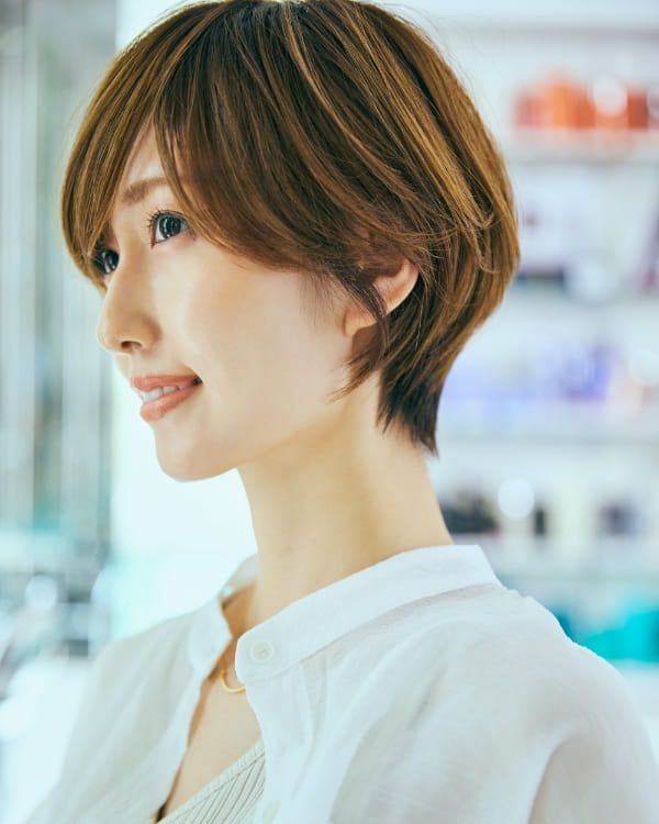 よく、お客様からセルフスタイリングがべたついた仕上がりになってしまうという相談を受けます。それは、何度もスタイリング剤を継ぎ足して使用していることがほとんどで、それの根本的な原因は、1回で満足のいく仕上がりにならないことにあると思うんですよ。その点、例えば「スタイリングバーム アレンジ」は、絶妙な油分量。重すぎず軽すぎず操作性の良いテクスチャーだから、ショートの方だと小指の先程の少量1回でしっかり仕上げることもできます。そして、バーム特有の時間がたつとボリュームダウンする感じもなく、そのままのスタイルをキープしてくれます。そういった簡単にスタイルを作れてキープできる点でも、お客様にご提案しやすいですね。