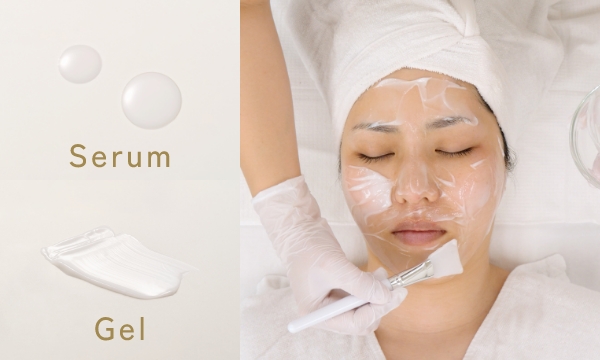 脱毛後はウォータリーセラムとディープモイストジェルでしっかり保湿し、肌を落ち着かせます。