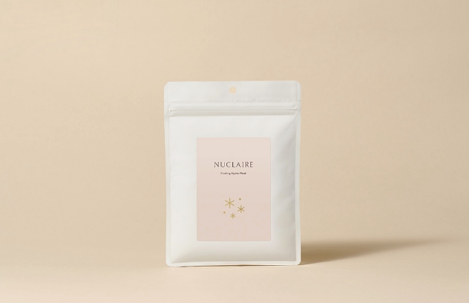 クーリングハイドロマスクを顔にのせ、ハンドプレスをしながら肌に密着させます。10分ほどおいてから剥がし、パック後の残った美容液は肌に馴染ませます。