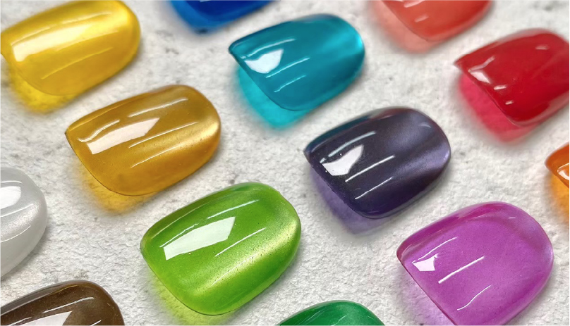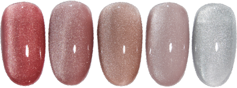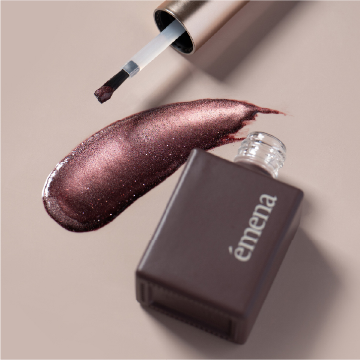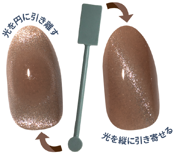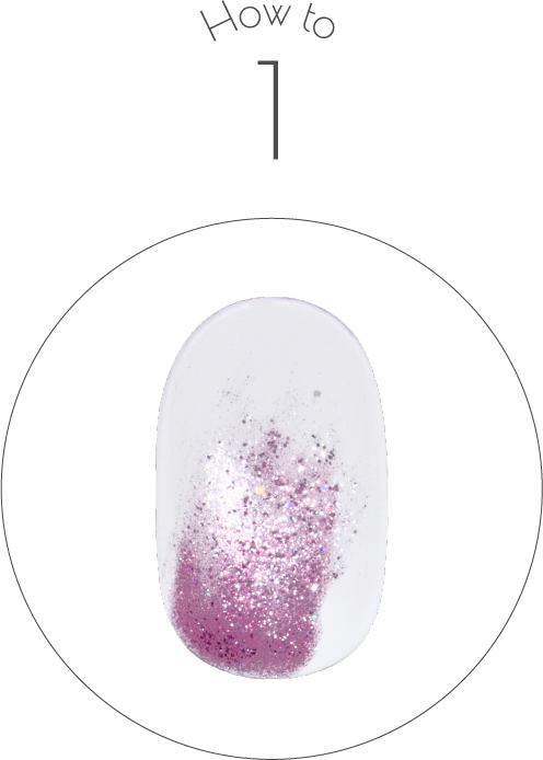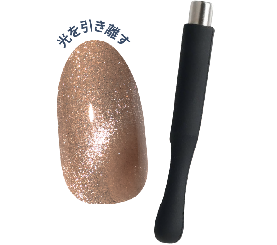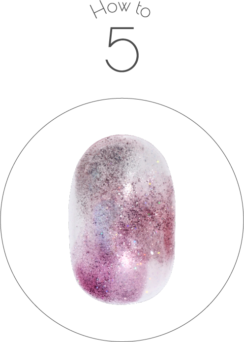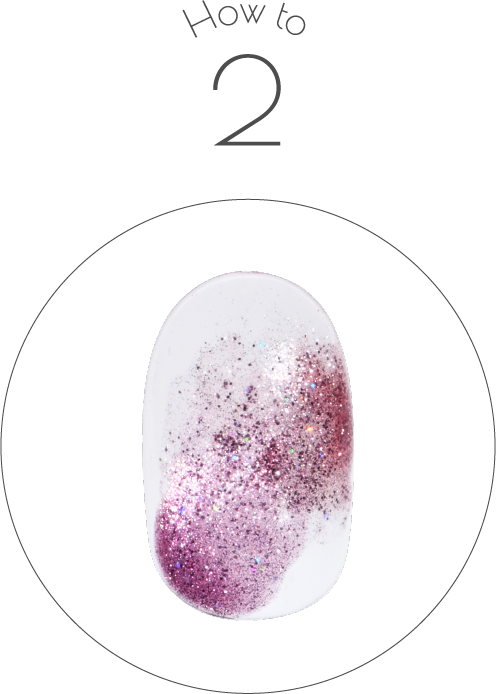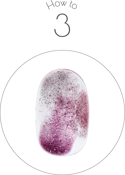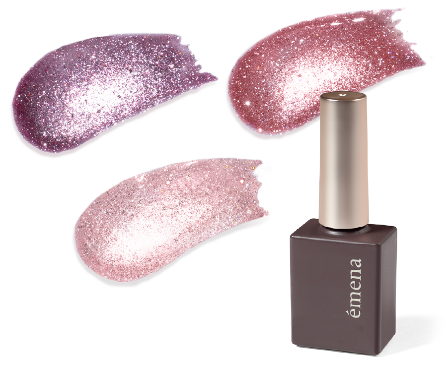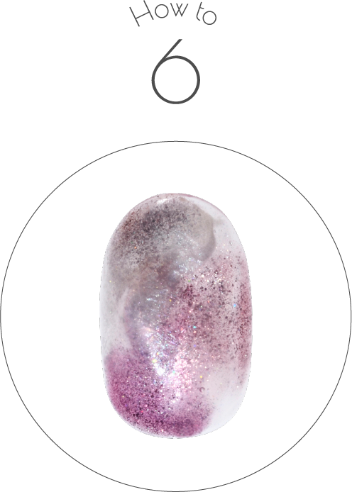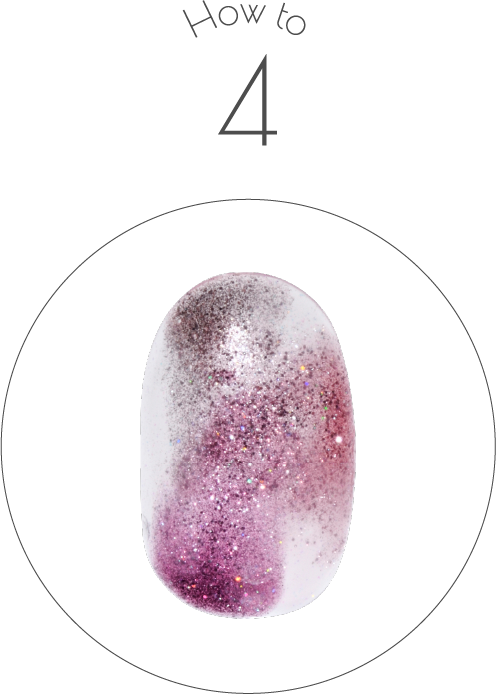 大人なピンクカラーをセレクト。フラッシュグリッターの煌めき感を出したかったので、マグを全面に光らせるのではなく、各色部分的に集めるようにマグネットを当てて、表情をつけています。