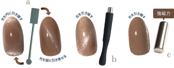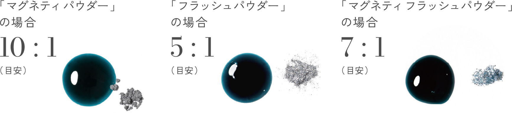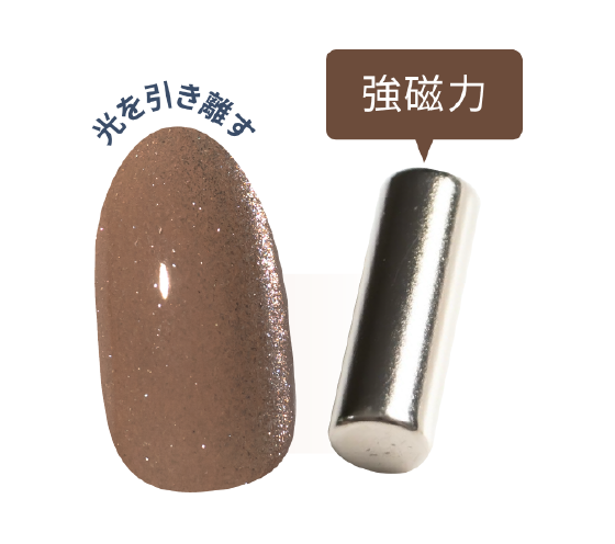 片側にマグネットの粒子を光らせるようにすると上品な印象のアートに。