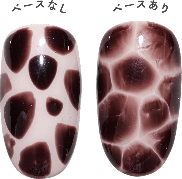 eを全体に塗布し硬化後、クリアの部分にfでgとhを所々ふわっと重ねて塗布し硬化。