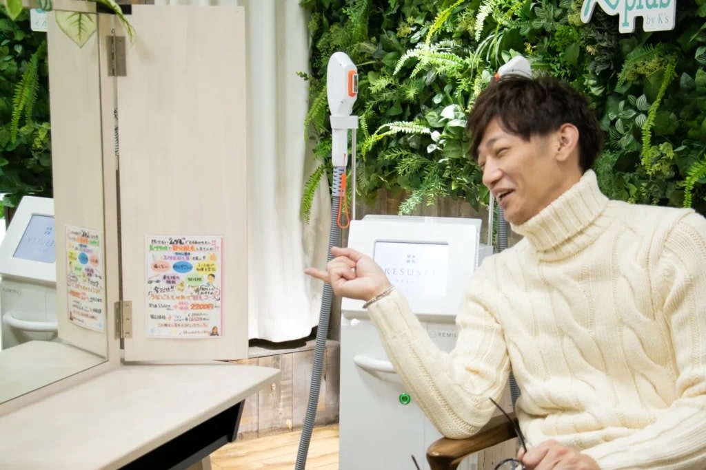 水上さん:僕は毛深くなく、ヒゲがあってうれしいくらいなので(笑)。脱毛したいと思ったことも、脱毛機器を操作したこともありませんでした。そもそも、脱毛はエステの分野で自分とは別次元のサービスだと思っていましたし、機械の金額も高そうなイメージ。お客様からのリクエストがなければ、検討していなかったかもしれません。
