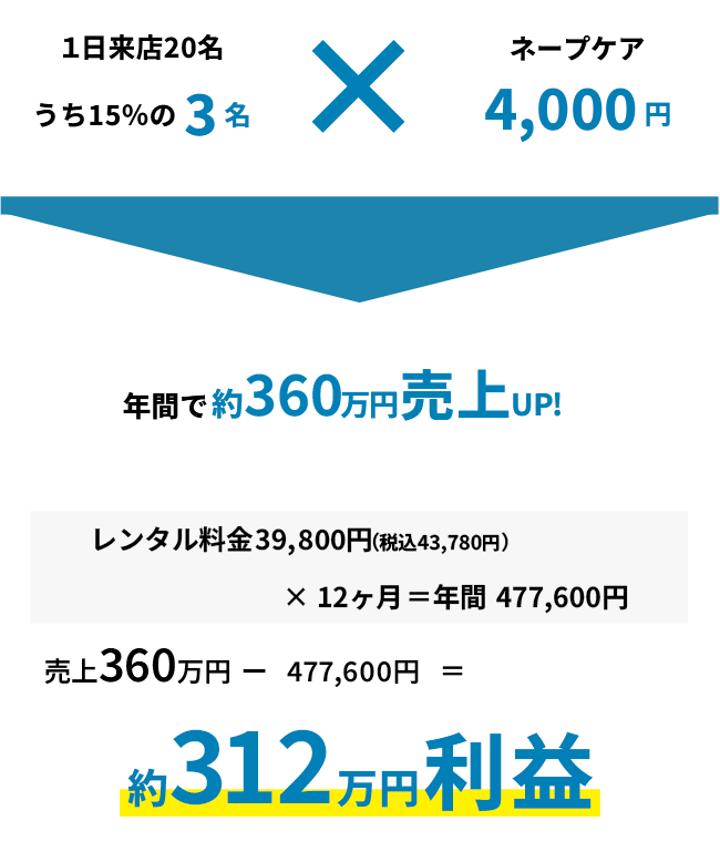※1日3名のうなじ脱毛を行った場合。価格設定はサロン様で自由に決めていただけます。