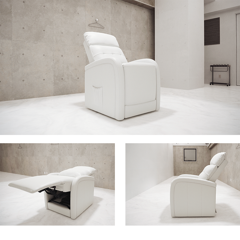 お客様の頭部の角度にこだわった、最大170°の無段階リクライニング設計。施術中も圧迫感なく、自然な姿勢でリラックスしていただけます。首・肩まわりへの負担も少なく、長時間の施術にも最適です。