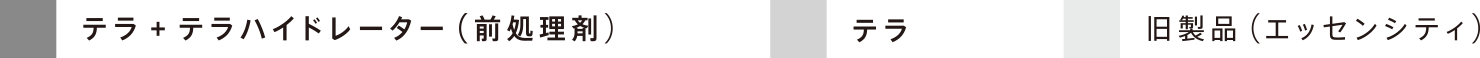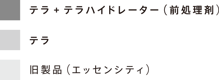 カラー直後、1か月後ともに同社旧製品よりさらに良いコンディショニングを保っており、テラはキューティクルの損傷が少なく、より多くのキューティクルがうろこ状に密着しています。