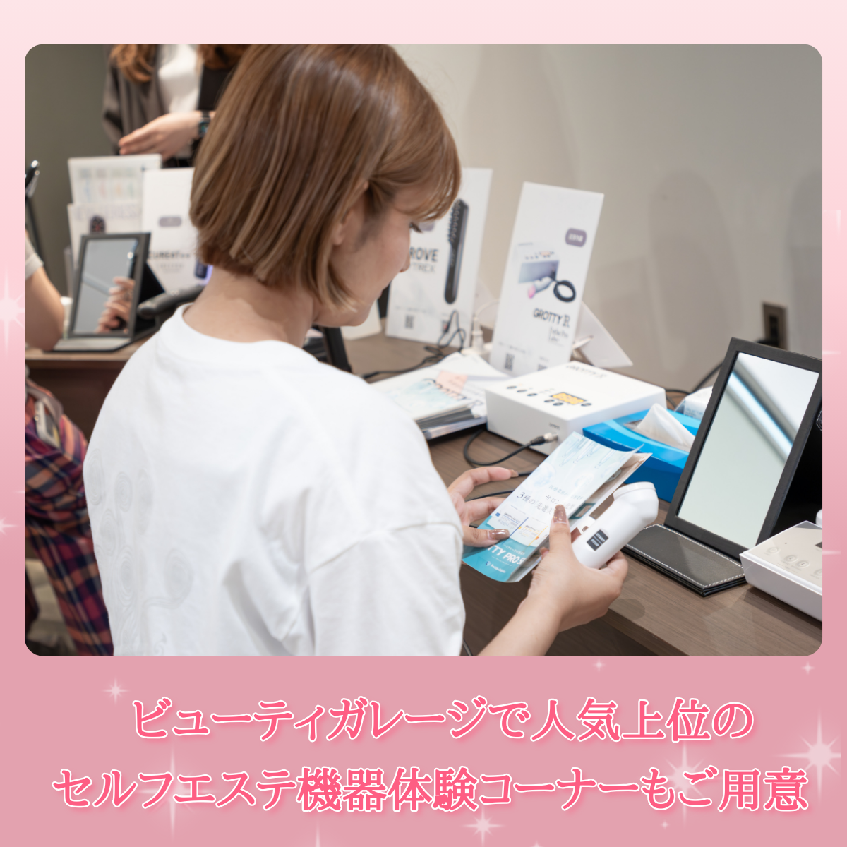 また今回はビューティガレージで人気のMetaLT(メタエルティ)をはじめとした、セルフエステ機器の体験コーナーもご用意しております!
