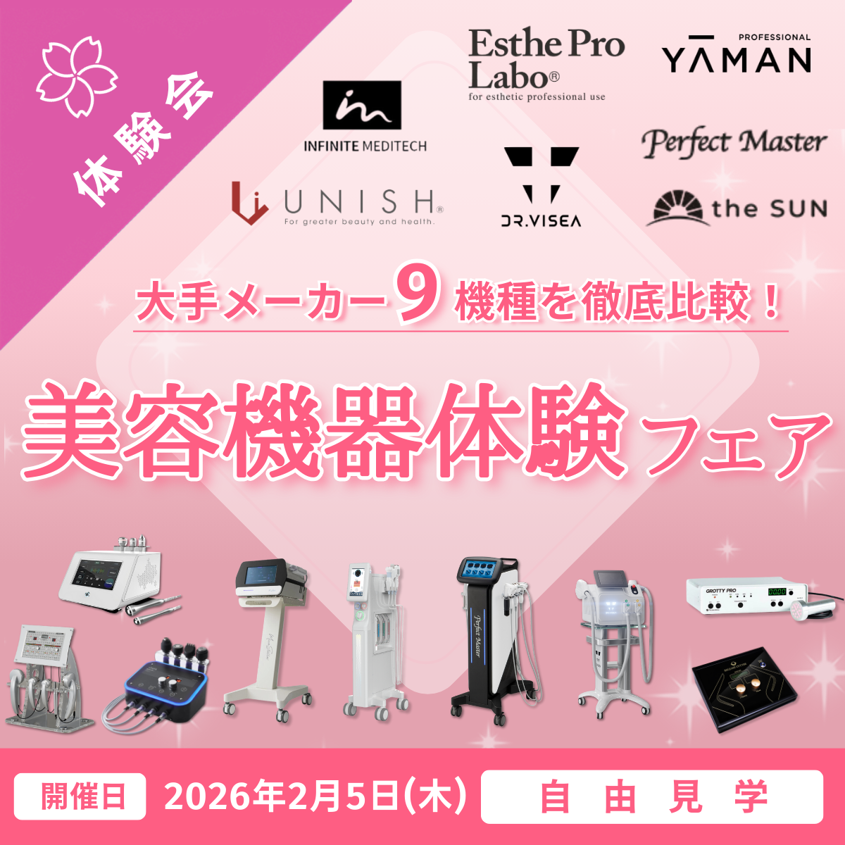 【自由見学】徹底比較!大手メーカー9機種が集結!美容機器体験フェア