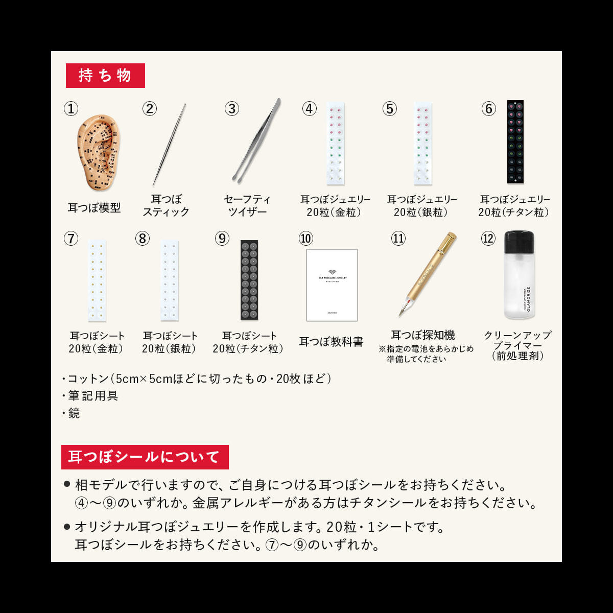 ・相モデルで行いますので、ご自身につける耳つぼシールをお持ちください。